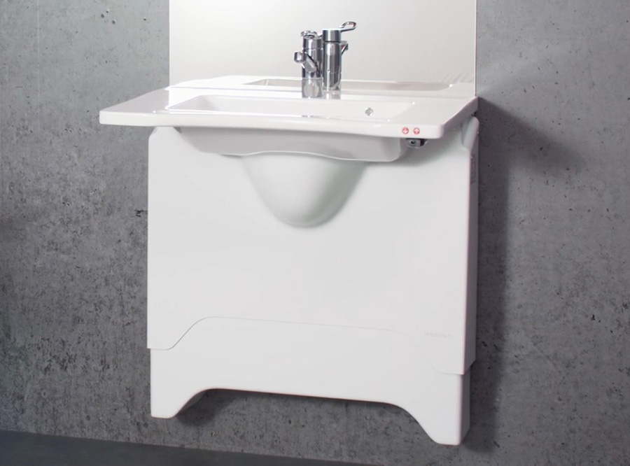 Med nye MATRIX servantoppheng kan man både høyde- og sideregulere servanten på en unik måte. En banebrytende løsning som øker både funksjonaliteten og hygienen rundt servanten og som åpner opp for å optimalisere og utnytte plassen på baderommet, både for brukere og pleiere.