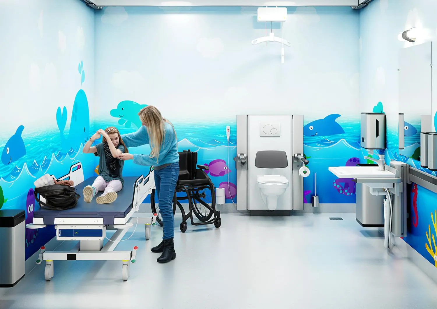 Vi leverer også stellebord til eldre barn, ungdom og voksne som er egnet til for eksempel skoler, idrettshaller, kjøpesenter eller andre offentlige rom.